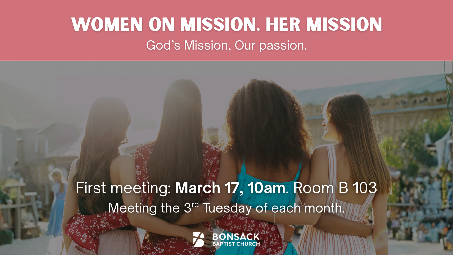 WOMEN ON MISSION: HER MISSION | First Meeting, March 17 at 10am in Room B103